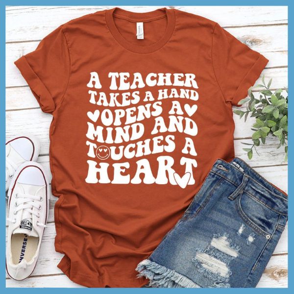 A Teacher Takes A Hand Opens A Mind And Touches A Heart T-Shirt, Hoodie, Ladies, Long Sleeve, Sweatshirt, Mug, Tank Top