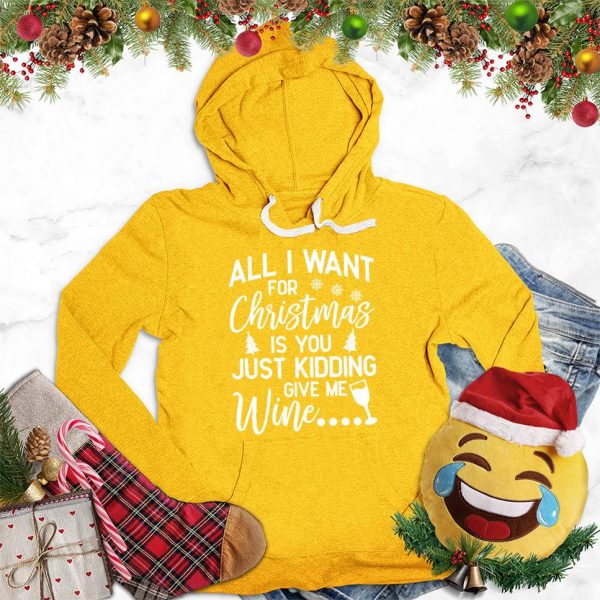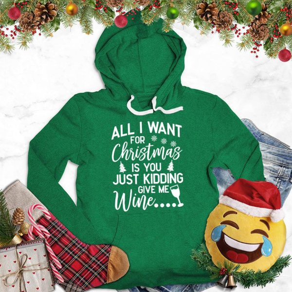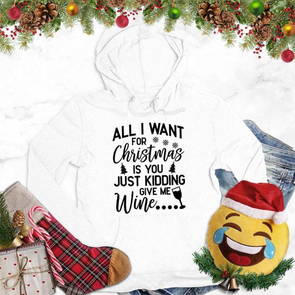 All I Want For Christmas Is You Just Kidding Give Me Wine Hoodie Information: