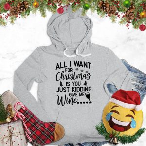 All I Want For Christmas Is You Just Kidding Give Me Wine Hoodie, Zipper Hoodie, Fleece Hoodie, Long Sleeve Shirt, T-Shirt